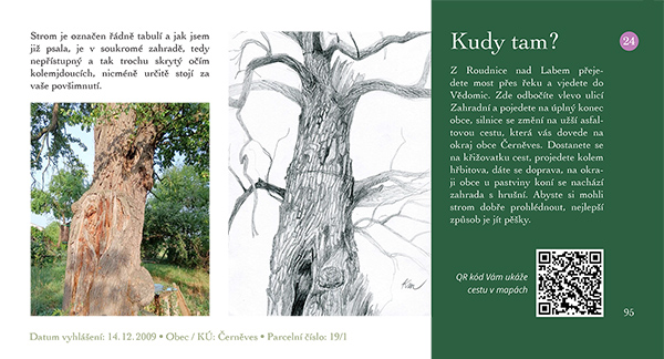 Součástí knihy je i samostatná mapka regionu s vyznačenými stromy a jejich GPS souřadnicemi (v QR kódech). Slovní popis cest k jednotlivým památným stromům vybízí čtenáře k výletům do krajiny.